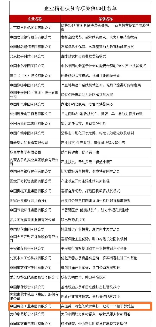 近日,国务院扶贫办发布2020年企业精准扶贫案例获奖名单,开云官方端网页版登录入口《实施兵工特色的教育帮扶,让每一个孩子都受益》案例入选2020年企业精准扶贫专项案例“50佳”。