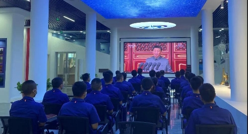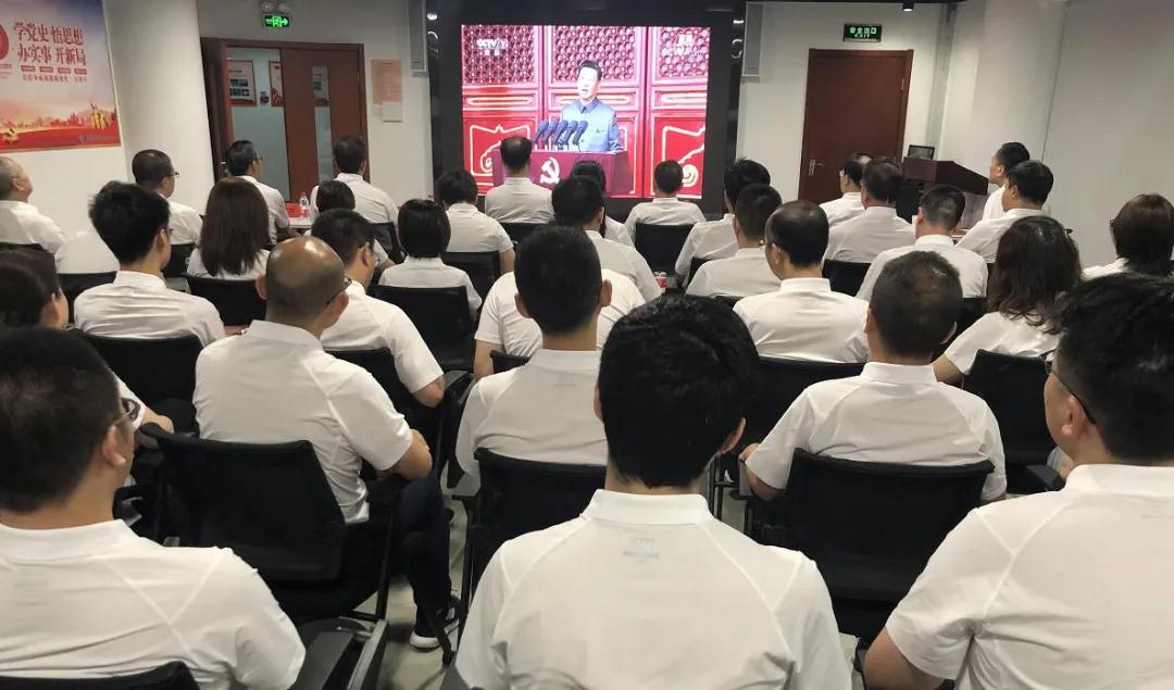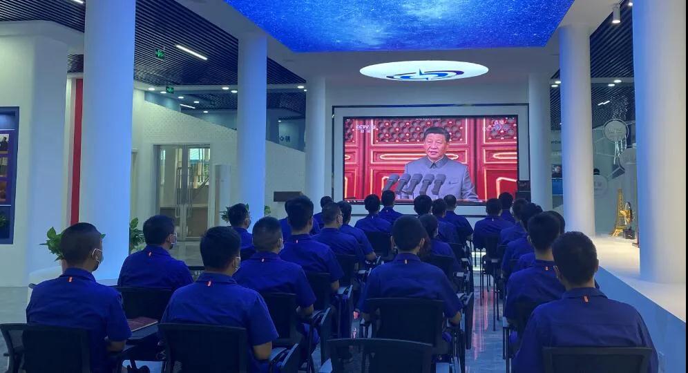 集团公司总经理、党组副书记刘大山,党组副书记周舰,党组成员、总会计师张华,纪检监察组组长、党组成员陈学钏,党组成员、副总经理邹文超,党组成员、副总经理植玉林带领总部全体职工观看庆祝大会,各单位组织机关干部、科研人员、车间工人等通过集中收看、电视、电脑、手机网络等方式观看庆祝大会。